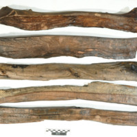 The paragraph describes the features retrieved in layer 5 from Trench 1, excavated on 31 August: Some elements have been exposed more, and new ones have been uncovered, such as the lapstrake planking.